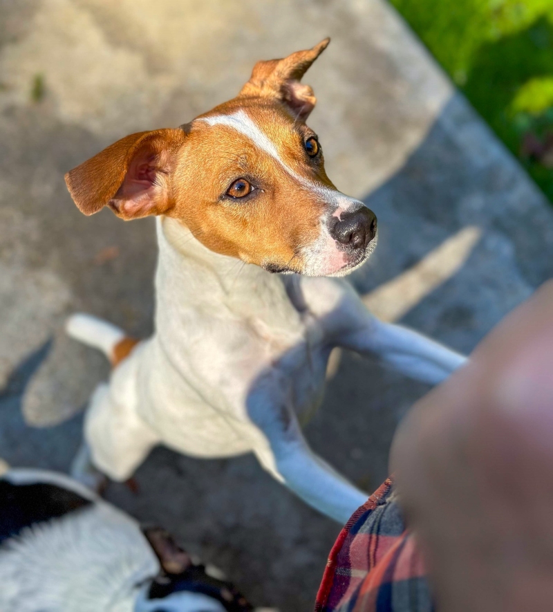 Nyssa is a 22 pound Jack Russell Terrier-Xolo mix, and Luna is a Border Terrier Pug mix. These girls have bonded at the rescue. They have been growing up together here. They follow one another everywhere! These girls are similar sized, similar age, and play well together; their bond will just grow more once they find their forever humans to love them. Both girls are incredibly snuggly, playful, intelligent and very trainable. Both would make excellent agility course dogs. Nyssa and Luna are both spayed.