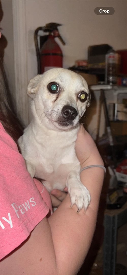 Cookie is a sweet approx. 2-year-old Chihuahua, Rat Terrier and a 3rd curly-tailed breed mix, she is about 8 pounds. Cookie is adorable, has a silky soft coat, and she really wants to be someone's very special girl. Cookie loves attention. Cookie was found in a field. She was then abandoned to the backyard and starved by her rescueer so my partner rescue stepped in to help Cookie and got her to safety.